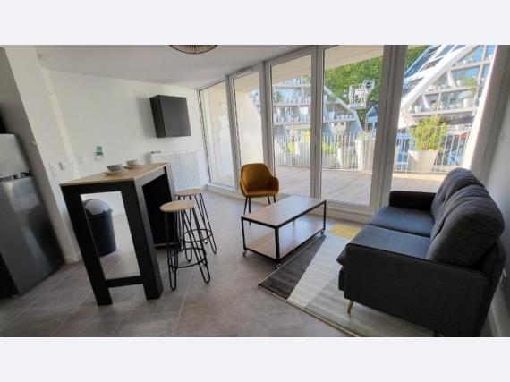BORDEAUX BASTIDE, 820 Euros + charges 80 Euros Appartement T2 État Neuf 40 m2. Avec Terrasse 27m2. En residence avec ascenseur. Comprenant entree, sejour, cuisine Amenagee, 1 chambre, salle d'eau, WC. Proche transports et commerces. Caution : 1 mois HC. Nous contacter LADP 05.40.12.15.54. fd 220 Euros