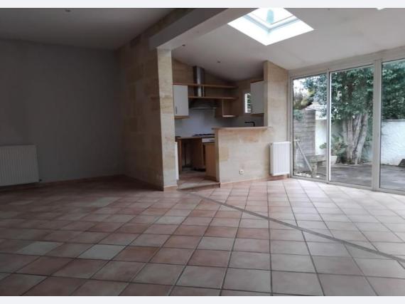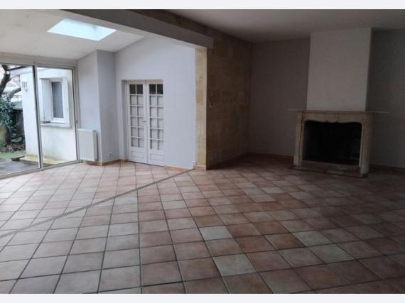 BEGLES, 1280 Euros charges comprises Maison T5 de plain pied sans vis a vis avec cheminee en pierre Tres bon etat 115 m2. Avec Jardin clos + piscine + Cave. Comprenant entree, salon, cuisine Americaine equipee, 3 chambres,salle de bain, salle d'eau, WC. Proche transports et commerces. Caution : 1 mois HC. Nous contacter LADP 05.56.04.04.04 fd 220 Euros
