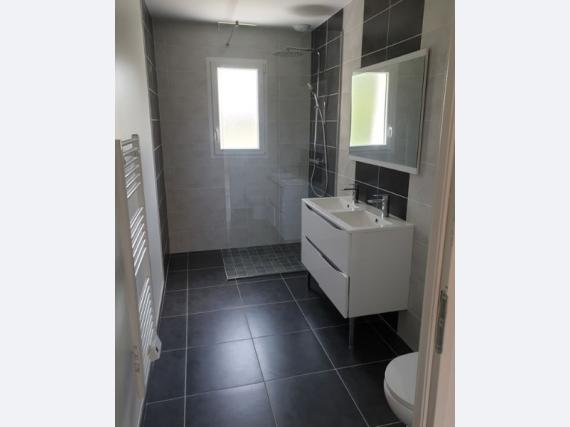 LANDE-DE-FRONSAC, 1209 Euros charges comprises Maison T4 en tres bon etat de 93 m2. Avec Terrasse et un garage. Comprenant entree, sejour, salon, cuisine Americaine equipee, trois chambres, salle d'eau, WC. Proche commodites. Caution : 1 mois HC. A visiter LADP 05.56.01.80.01 fd 220 Euros