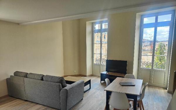 BORDEAUX, 1200 Euros + charges 40 Euros Appartement T3 bis Refait a neuf 75 m2 tres lumineux. Interphone. Comprenant entree, sejour, salon, cuisine Amenagee equipee, 2 chambres...
