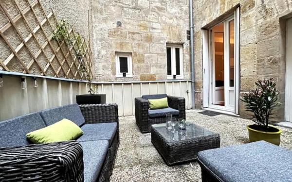BORDEAUX saint seurin, 935 Euros + charges 335 Euros Splendide Appartement T2 bis Renove de 60 m2. Avec Cour privee. Comprenant entree, salon, cuisine Amenagee equipee,...