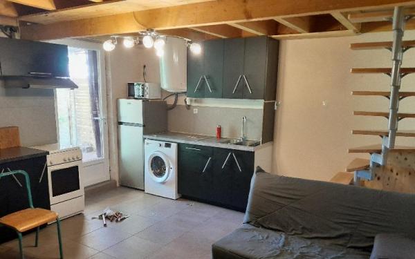 CENON , 750 Euros Maison Renovee type echoppe calme . Avec Terrasse + Cellier. Comprenant entree, salon, cuisine Amenagee equipee, 1 chambre, salle d'eau, WC. Proche transports...